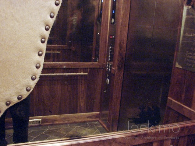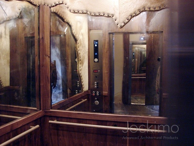 Our Tarnished Distressed MirrorUnique™ antique mirror glass is installed in the elevator cabs of this high end luxury hotel in Savannah, GA.