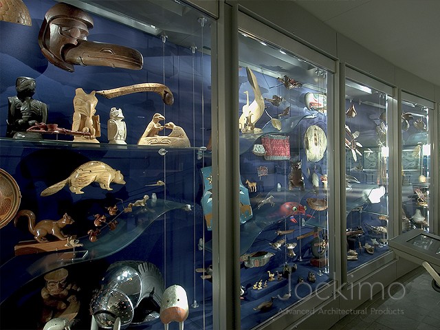 The Smithsonian contacted Jockimo and requested that we produce cast bent glass panels to be used as shelves in their display cases. They requested an "earth" glass texture. Jockimo's Classic texture was selected for the panels throughout the project.